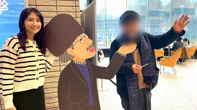「ロシアンハット館長」というキャラクターで絵本の中に登場する館長が、そのまま等身大パネルになって文学館に展示されています!