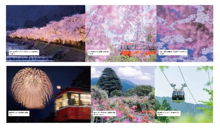 車内では、窓の上のスペースを活用して「あかいでんしゃフォトギャラリー」を展開します。これは、観光情報サイト「箱根ナビ」のInstagramで発信された四季折々の箱根の風景写真をポスターとして再編集し、展示するものです。移動時間を利用して、これから訪れる箱根の魅力に触れ、旅の期待感を高める狙いがあります。