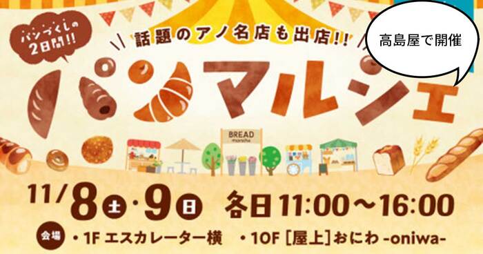 11月8日(土)・9日(日)に立川高島屋S.C.で「パンマルシェ」が開催されるようです。