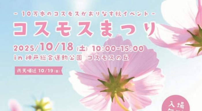 10月18日、神戸市須磨区の神戸総合運動公園で「コスモスまつり」が開催されます。