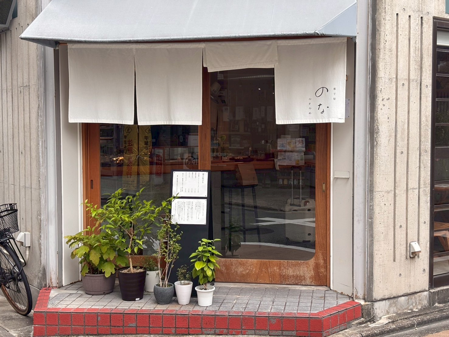 烏丸線「五条駅」から徒歩約10分。小学校や住宅が建ち並ぶ通りの一角に「菓子屋のな」はあります。季節の果物などをメインに、素朴ながら素材の魅力を引き出したモダンな和菓子のお店です。