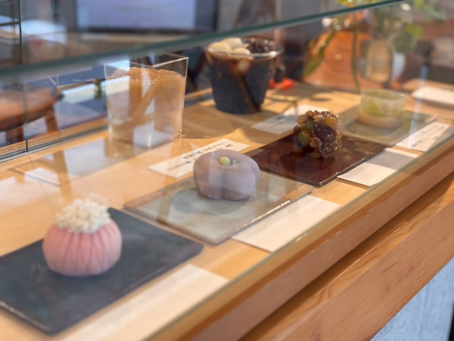 ショーケースを彩るのは、美しい上生菓子たち。美しい生菓子も気になりましたが、今回、編集部がいただいたのは「あんバターチャバタ」。