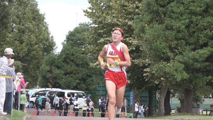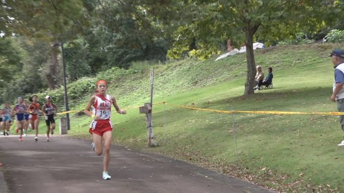 2区の3年、石田心優選手が徐々に差を縮めトップに躍り出ると、3区以降も首位をキープ。