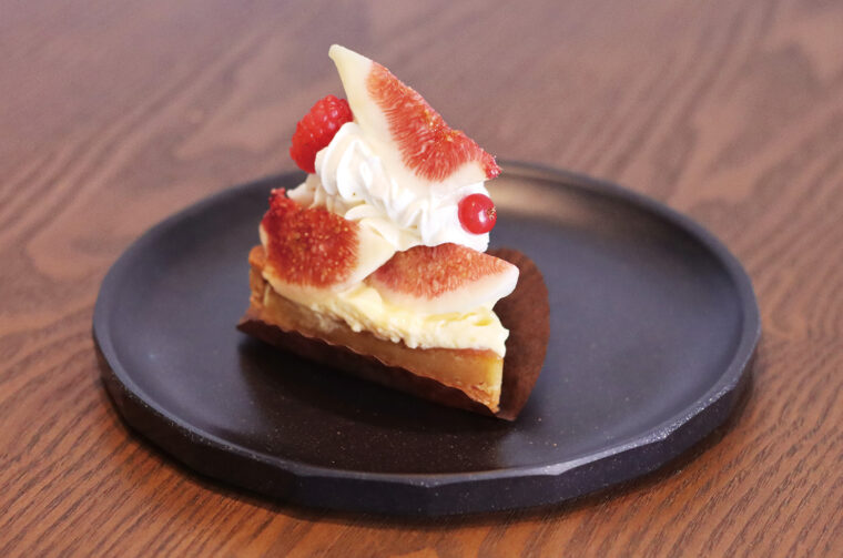 越の雫とマスカルポーネクリーム、カスタード、イチジクジャムを組み合わせたタルトです。