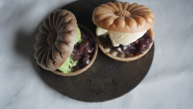 バニラアイスをはさめば、クリーミーな甘さとあんのコクが見事に調和。抹茶アイスを合わせれば、濃厚な抹茶の苦みとあんのやさしい甘さが和のコラボレーションを奏でます。