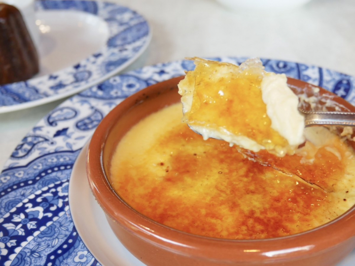 「クレームブリュレ」は注文を受けてから目の前で表面をバーナーで炙って仕上げてくれます。