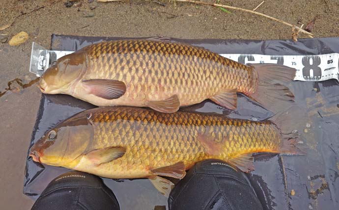 結果、朝イチの約1時間で2匹のマゴイに出会えた。今後はコイの活性が上がりそうなので、さらなるサイズアップを目指してサオを振りたい。