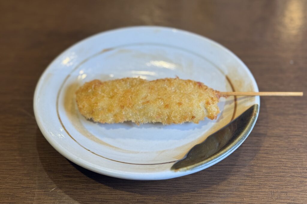 どて煮と串揚げを合わせた個性派な一本。タレにくぐらせたこちらは濃厚な甘辛さい味わいがクセになります。