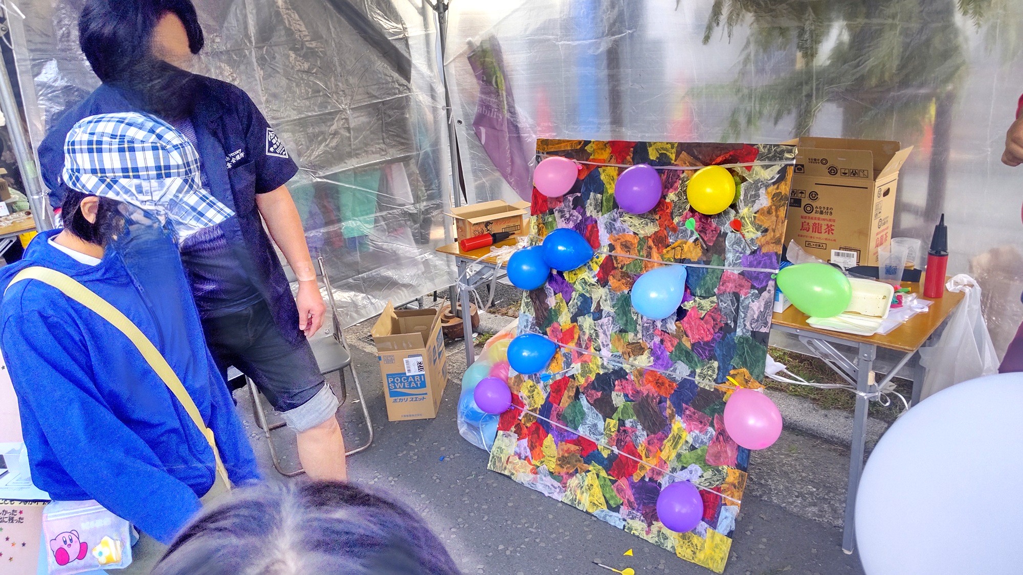 他にも、風船をダーツ形式で割るゲームコーナーや、本部の裏では子供向けの縁日が開催されていました。幼児や小学生の参加が多かったように思います。