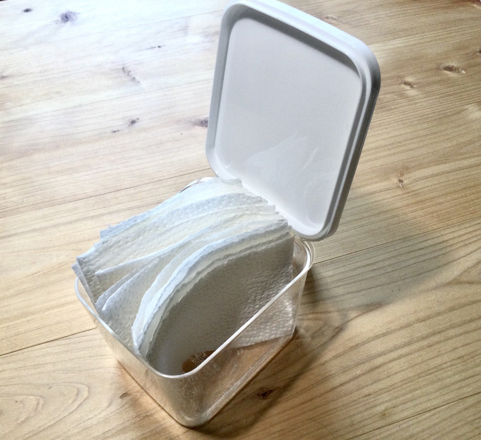 ※キッチンペーパーは湿気を防ぐように、フタつきの清潔な容器に保管しましょう。湿気を含むとカビや雑菌が繁殖する恐れがあります。