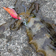 ササノハベラ5匹、ブダイ1匹。風が弱まるタイミングにどうにか20~40mラインを遠投して狙うもフグが沖にいて毎回ハリが取られてしまう。その内、隣の人が20cmくらいのメジナを釣り上げた。