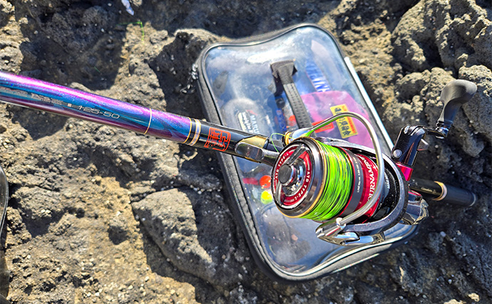 そこで、まず磯際から10mラインを狙った。理由は、地形的に山を背にする関係で陽射しがない分海中が暗い。5mくらいの水深と、ハエ根もあまり出ていないため入れ込んで狙えた。