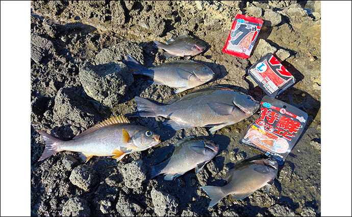 ルールは、状況によって厳しいときもあるため、大会当日に規定サイズを発表。この日はサイズ指定なしのメジナ5匹の総重量で競うことになった。