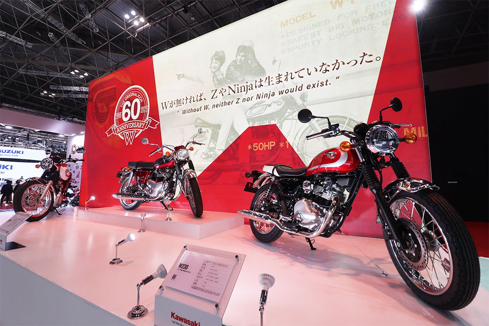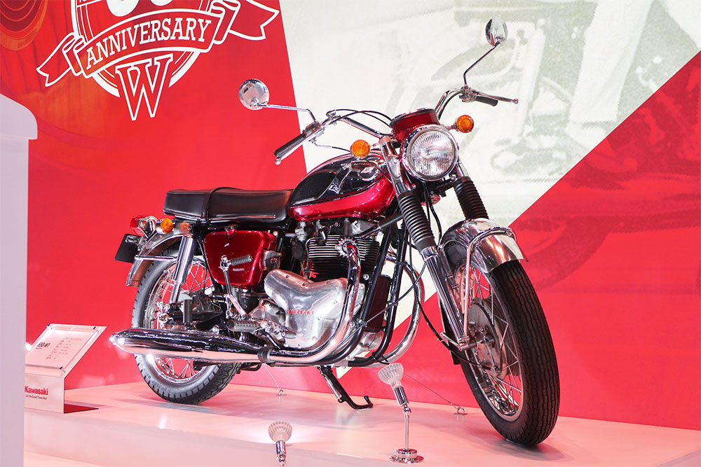 1965年10月に開催された「第12回 東京モーターショー」において、試作車「X650」という名称で公開され、翌1966年に発売されたのが「650-W1」です。今日まで続くカワサキの「W」ブランドが誕生して今年で60周年にあたることから、それを記念した企画・展示も用意されました。イベントの模様は別の記事でレポートします。