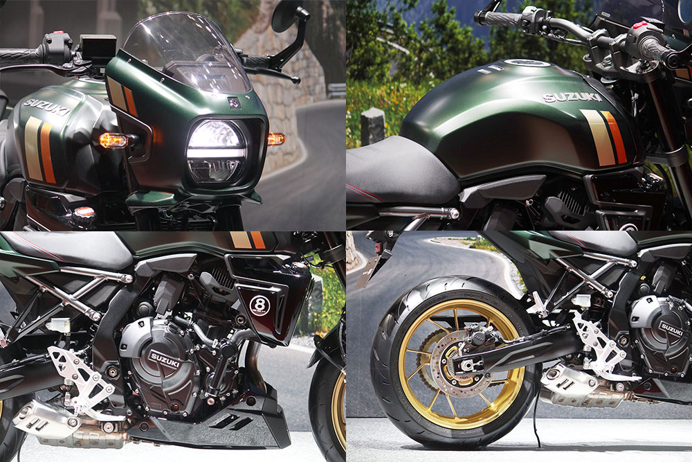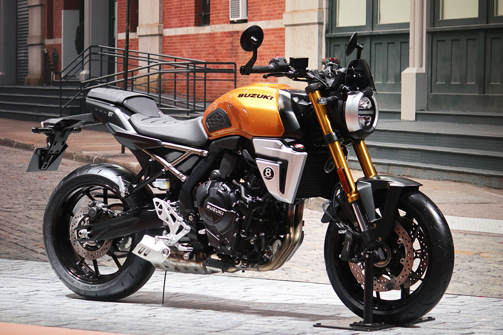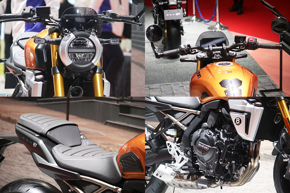 2025年7月に海外で発表されたスズキのネオレトロモデル「GSX-8T」の国内市販予定車が初公開されました。排気量775ccの水冷並列2気筒エンジンを搭載する「GSX-8S」をベースに、スタイリングは1960年代のネイキッドバイク「T500」をモチーフとしています。ラジエーターシュラウドには、ビリヤードの勝負球を意味するエイトボールをイメージした立体エンブレムを配するなど、個性的な仕上がりとなっています。