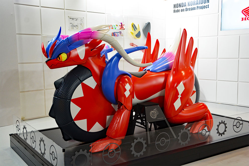 メインプログラムのひとつである「Tokyo Future Tour 2035」では、「ポケモン」とトヨタ自動車、本田技研工業のコラボレーションによって誕生した「トヨタミライドン」と「ホンダコライドン」が展示されていました。「ミライドン」と「コライドン」は、2022年11月に発売されたゲーム『ポケットモンスター スカーレット・バイオレット』に登場する伝説のポケモンです。イベント期間中には「ライド体験」の時間が設けられており、幸運にも乗車できた子どもたちは、生き物のように瞬きや息づかいをするホンダコライドンの背中でのひとときを満喫していました。