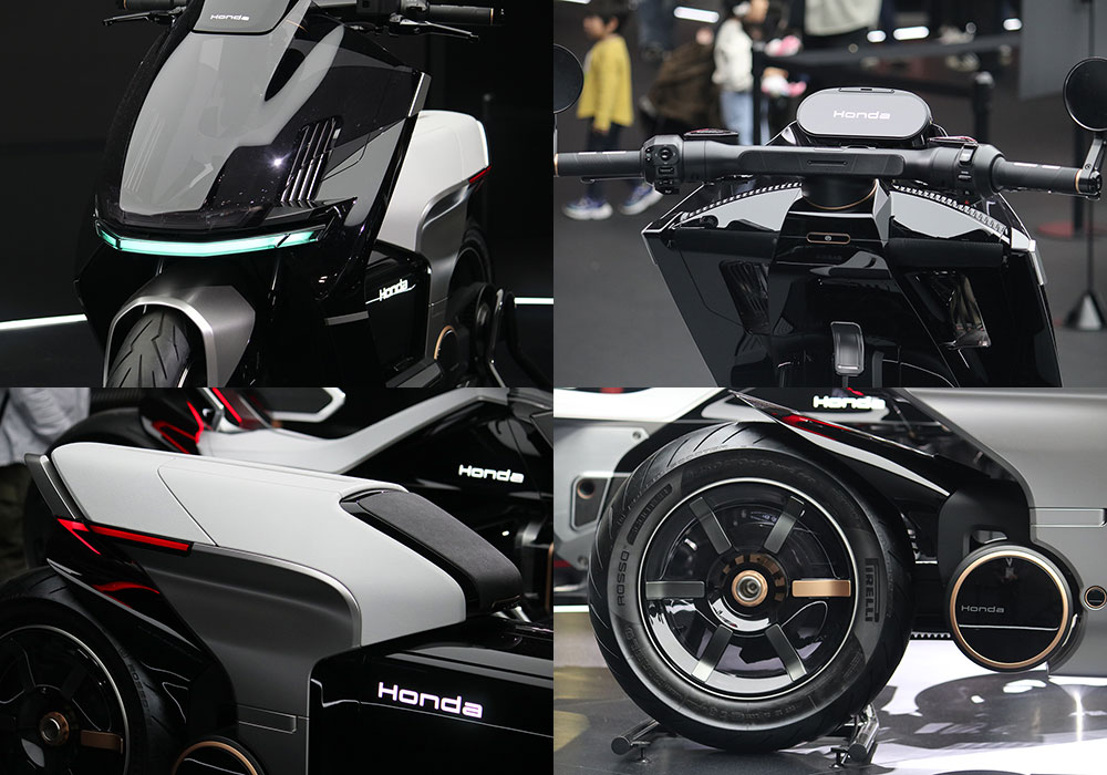 ホンダのブースで注目を集めていたのが、電動二輪のコンセプトモデル「EV OUTLIER CONCEPT」です。Outlierとは“枠にとらわれない存在”という意味で、従来の内燃機関モデルの延長ではなく、電動だからこそ実現できる新しい価値を追求するためにこのコンセプトモデルを立ち上げました。キーワードは「Gliding」「Ecstasy」「Low」の3つで、前後のホイールにそれぞれインホイールモーターを搭載し、電動ならではの圧倒的な加速力を実現するモビリティとのことです。EVバイクの新たな可能性を示した1台と言えるでしょう。