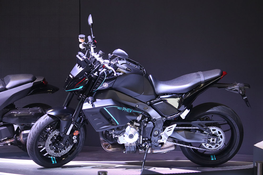 こちらは大型モーターサイクルの楽しみ方の拡張を目指す、もう一台の「SPHEV」モデル「PROTO PHEV」です。「MT-09」をベースに駆動用モーターやEV用バッテリーを搭載しており、スポーティな走りと高い環境性能を兼ね備えながら、内燃機関のさらなる可能性を目指した一台です。「PROTO PHEV」がヤマハのDNAをどう表現していくのか、期待に胸が膨らみます。