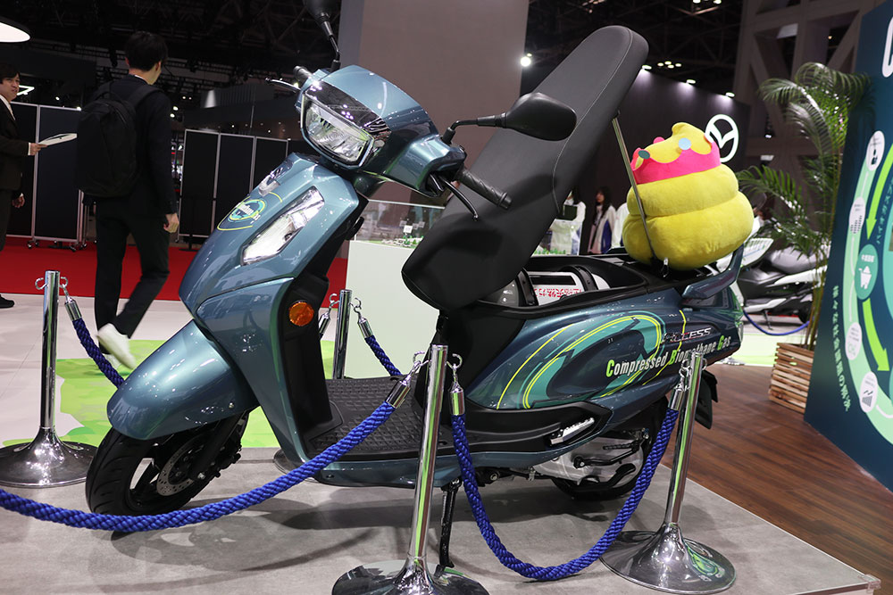 カーボンニュートラルの実現に向けたマルチパスウェイ(多様な技術の選択肢)のひとつとして、「CNG」(Compressed Natural Gas / 圧縮天然ガス)や「CBG」(Compressed Biomethane Gas / 圧縮バイオメタンガス)仕様のスクーターを展示しています。その一台がこちらの「ACCESS CNG仕様」です。