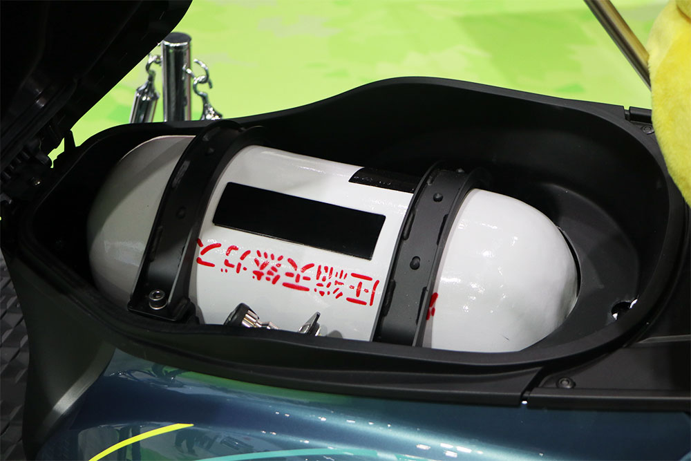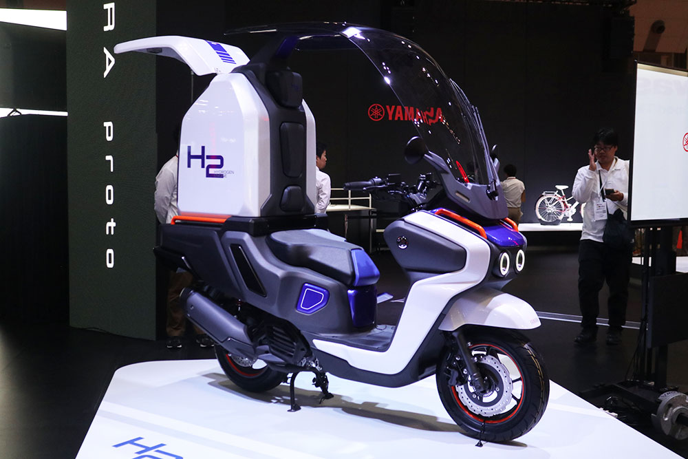 カーボンニュートラルの実現に向けた次世代モビリティ開発のひとつとして、ヤマハがトヨタと共同開発している水素エンジン搭載二輪車が「H2 Buddy Porter Concept」です。ヤマハは主に水素エンジンや車体を、トヨタは二輪車への搭載に適した小型の高圧水素タンク(認可取得済)を新たに開発しています。水素満タン時の航続距離は実測で100km以上に及びます。
