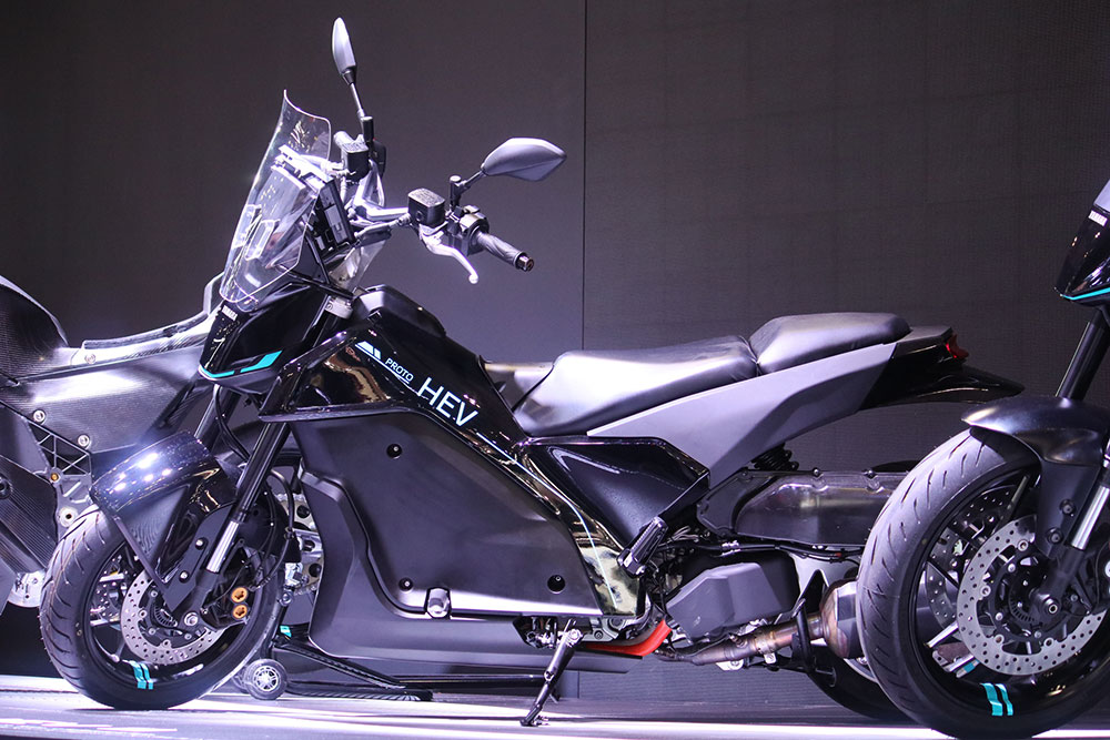 駆動用モーターとガソリンエンジン、そして発電用モーターで構成される「SPHEV(Series Parallel Hybrid Electric Vehicle / シリーズ・パラレル・ハイブリッド・エレクトリック・ヴィークル)」モデルの一台がこの電動モビリティ「PROTO HEV」です。