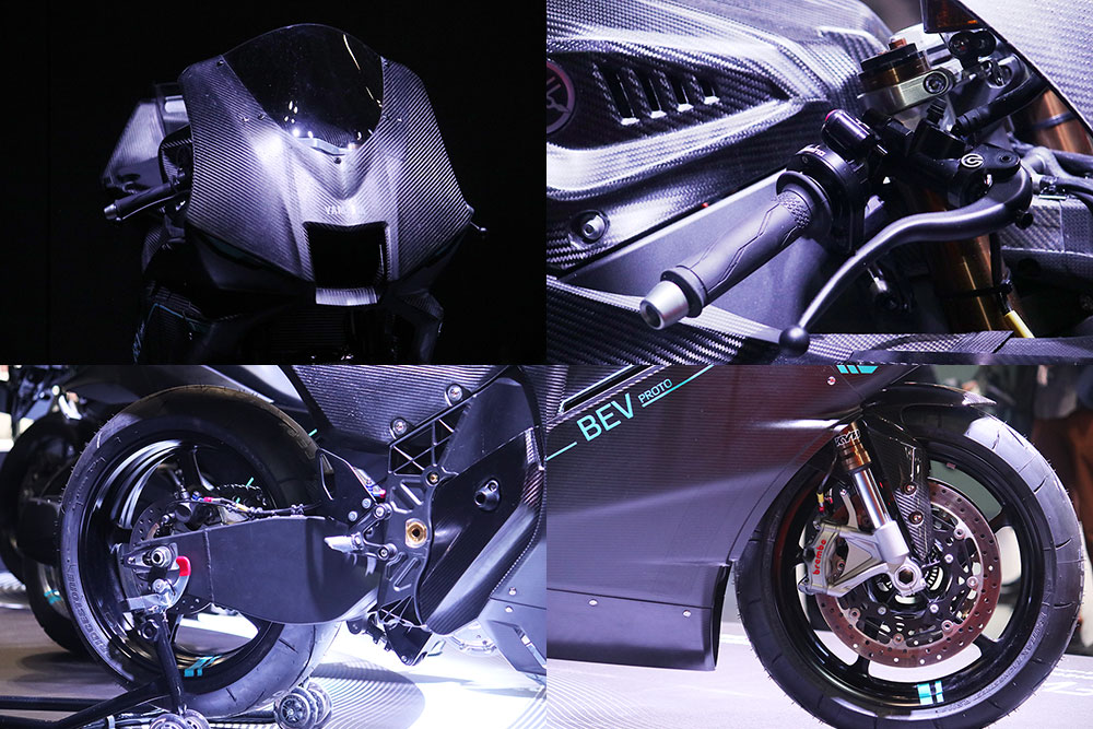 「大型バッテリーEVならではのFUN」を体現する実走プロトモデルとして公開された「PROTO BEV」。新感覚の乗り味と扱いやすさを兼ね備えたスーパースポーツEVで、FUNの最大化を目的に軽量化とコンパクト化を追求しています。これまでの内燃機関モデルで培ってきた操縦安定性を再現しつつ、バッテリーEVの特徴であるリニアなスロットルレスポンスと力強くスムーズな加速性能を融合しているのが特徴です。