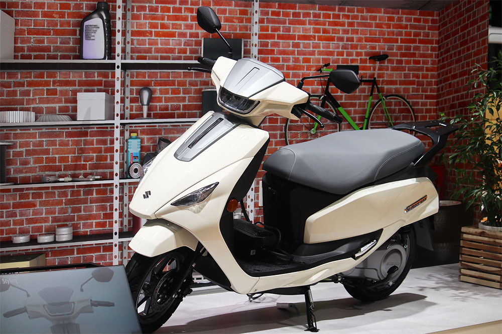2025年1月にインドで発表された二輪BEV世界戦略車の第一弾となる「e-Address」。ハンドルマウントのヘッドライトやフラットなフロアボードなど、既存のアドレスとのつながりを感じさせるスタイリングに、BEVスクーターらしい先進的なニュアンスを巧みに融合させています。取り回しのしやすさと航続可能距離とのバランスを追求した、日常生活に寄り添う原付二種相当の電動スクーターです。