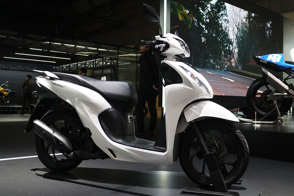 同じく「新基準原付」に適合したスクーター「Dio110 Lite」も展示されました。排気量は109ccのまま、最高出力を3.7kW(5.0PS)に抑えています。外観は原付二種の「Dio110」とほぼ共通ですが、タンデムステップが省略されているほか、スピードメーターの時速上限が60km/h(速度警告灯付き)となるなど、「原付一種」に合わせた設定となっています。