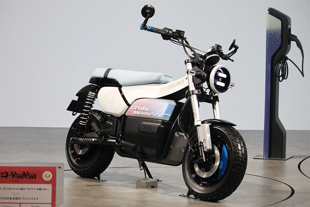 ファットな前後タイヤにタンクレスなスタイリング。これを見て「あっ、バンバンだ!」と思ったベテランライダーも多いのではないでしょうか。1970年代より人気を博したスズキのレジャーバイク「VanVan」をモチーフとしたコンセプトBEV※ファンバイクです。