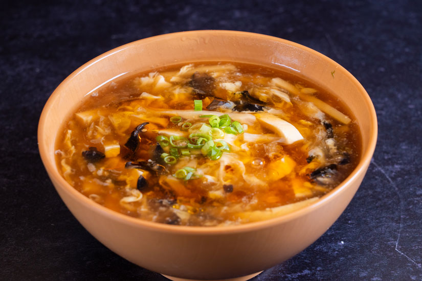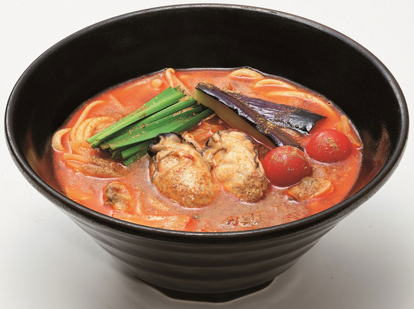 酸と3(さん)をかけたピリ辛で酸味のある中華風ラーメン。寒さで冷えた身体も芯から温める味わい。チャーハンを注文した人のみ注文可。