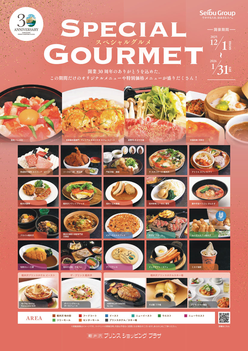 12/1(月)~2026/1/31(金)『30th SPECIAL GOURMET』軽井沢・プリンスショッピングプラザ開業30周年記念!対象のレストラン29店舗で期間限定のスペシャルグルメや看板メニューをお手頃価格で味わえるキャンペーンが開催@長野県・軽井沢町