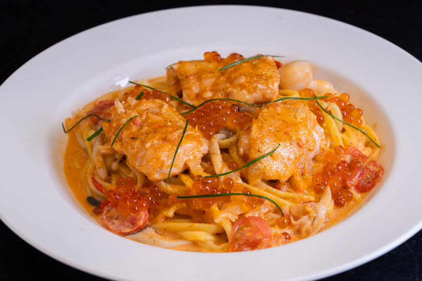 自家製トマトクリームソースに、ソテーしたサーモンハラス、いくらをトッピングした贅沢な一品のお得なセット