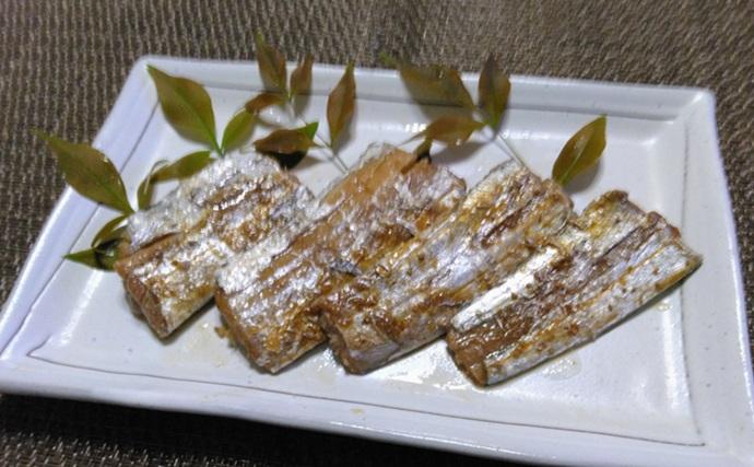 隣の竿頭を過去得した常連さん曰く「今日はサンマが多かった」。サンマとは無論、釣り人に殆ど縁のない目黒のサンマではなく、小型のタチウオのこと。そんなタチウオは、圧力鍋でじっくり煮込んで骨まで食べちゃいましょう!