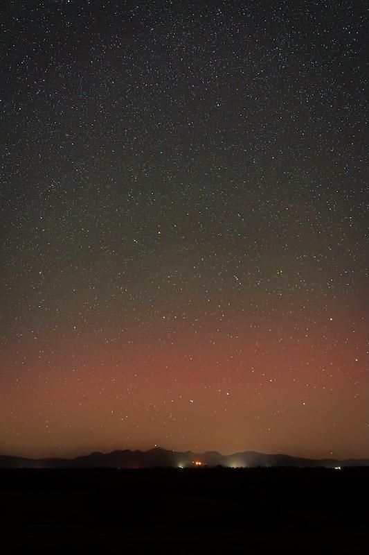 そして北の空をじっくり見てみると、目視でも空がうっすらと赤くなっているのがわかりました。