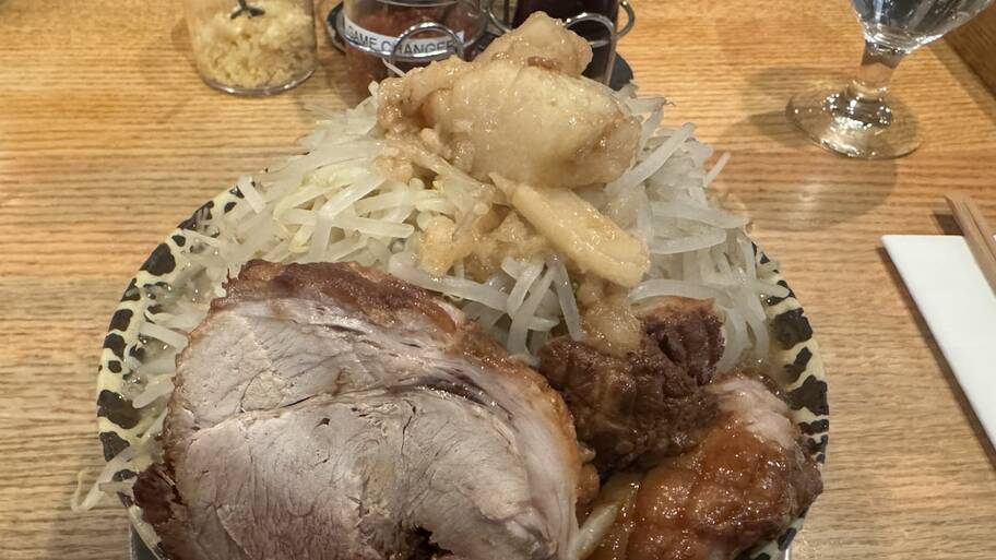 下写真の『スーパージンジャー29』(1,250円)は、そこに脂身の少ない豚の腕チャーシューをたくさんトッピングした一杯です。