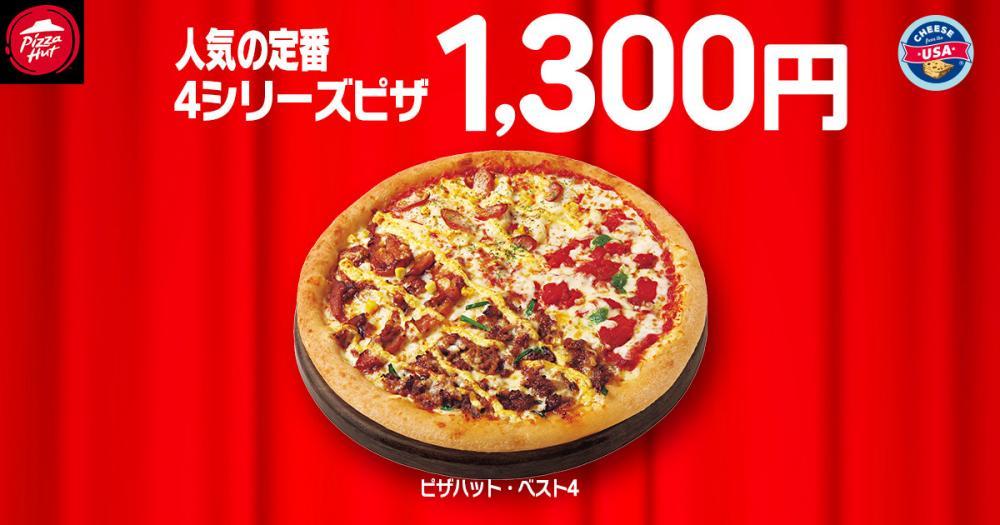 ほっくりポテマヨソーセージ、ピザハット・マルゲリータ、特うまプルコギ、テリマヨチキンの4種が楽しめる「ピザハット・ベスト4」は、お持ち帰り限定で通常価格3190円のところ1890円お得な1300円に。
