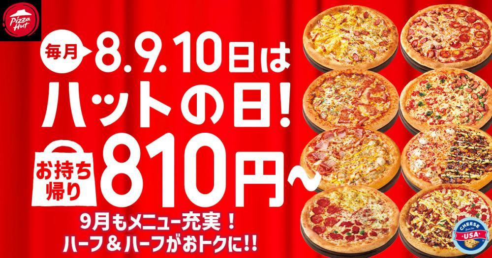 毎月8日・9日・10日を「ハットの日」として、ピザハットの商品をテイクアウト810円から提供するキャンペーンを実施しています。