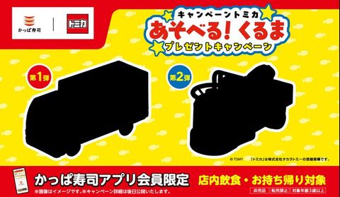 株式会社タカラトミーが発売する「トミカ」と、かっぱ寿司によるコラボキャンペーンの概要は以下の通りです。