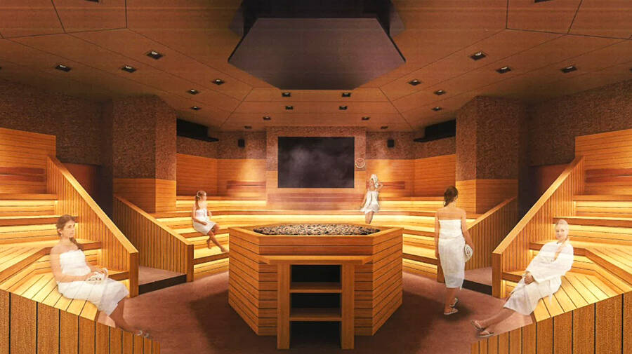 ソムリエ風に仮装したスタッフが、浴槽へワインを1本まるごと投入するパフォーマンスが行われ、入浴しながらワインの香りをふんだんに楽しめる。