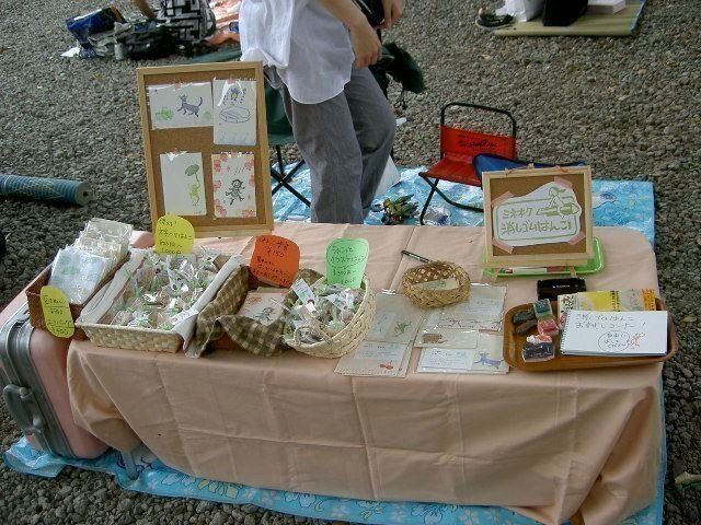 8月の末に、屋外のイベントに出店しました。裸足にサンダル、上はTシャツ1枚。念のため、薄手のジャンバーを持って行きましたが、軽装でした。地べたにレジャーシートを敷いて、はんこを並べ、簡易的な小さなキャンプ椅子に腰掛けて、はんこを販売していました。