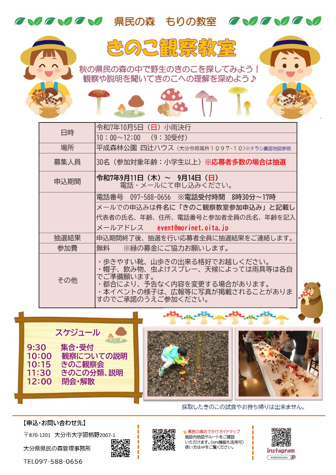 申込受付中!県民の森で『きのこ観察教室』が開催されます