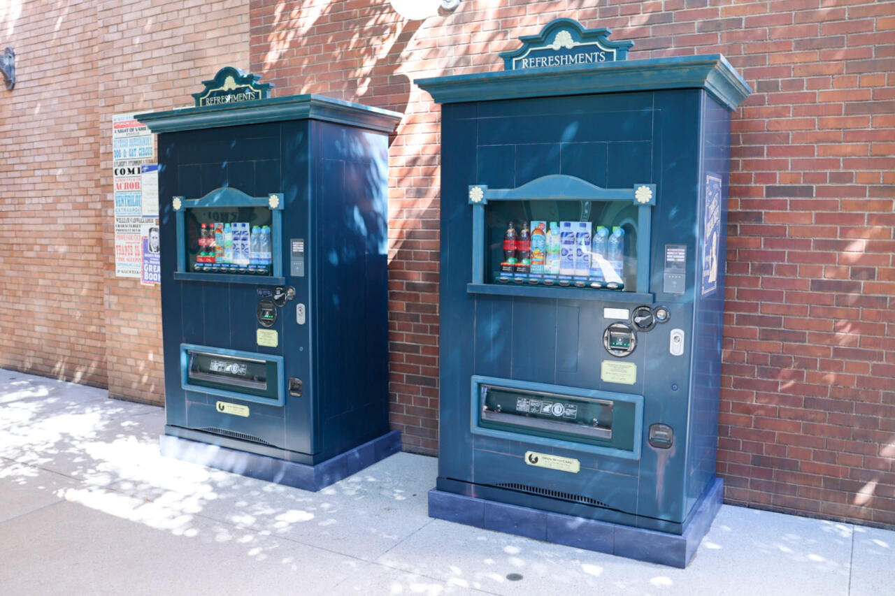 東京ディズニーシーには、それぞれのテーマポートの世界観にあわせて設置された自動販売機があり、手軽に水分補給をすることができます。