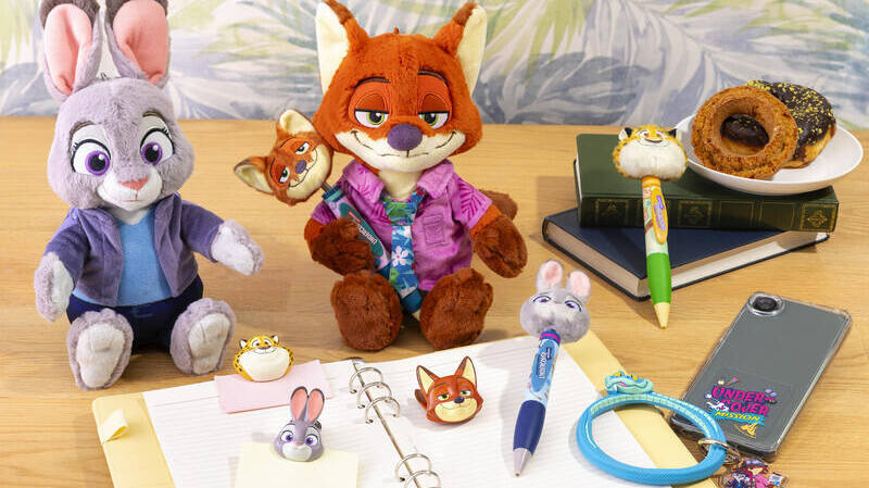 グッズは、ニックとジュディたちがテーマパークで潜入捜査する様子を描いた特別なデザイン。