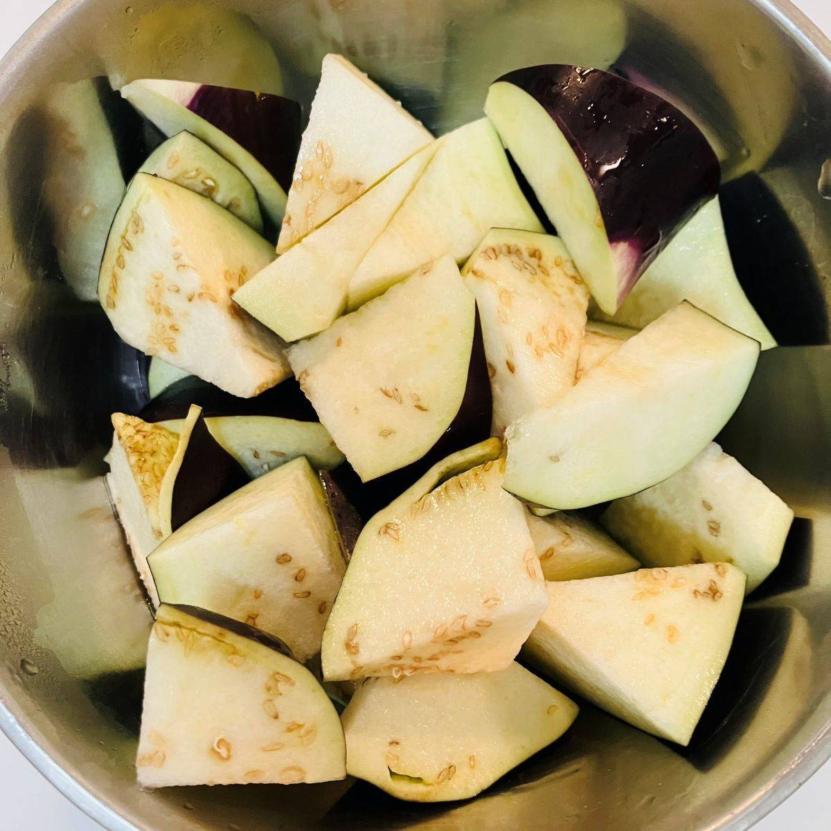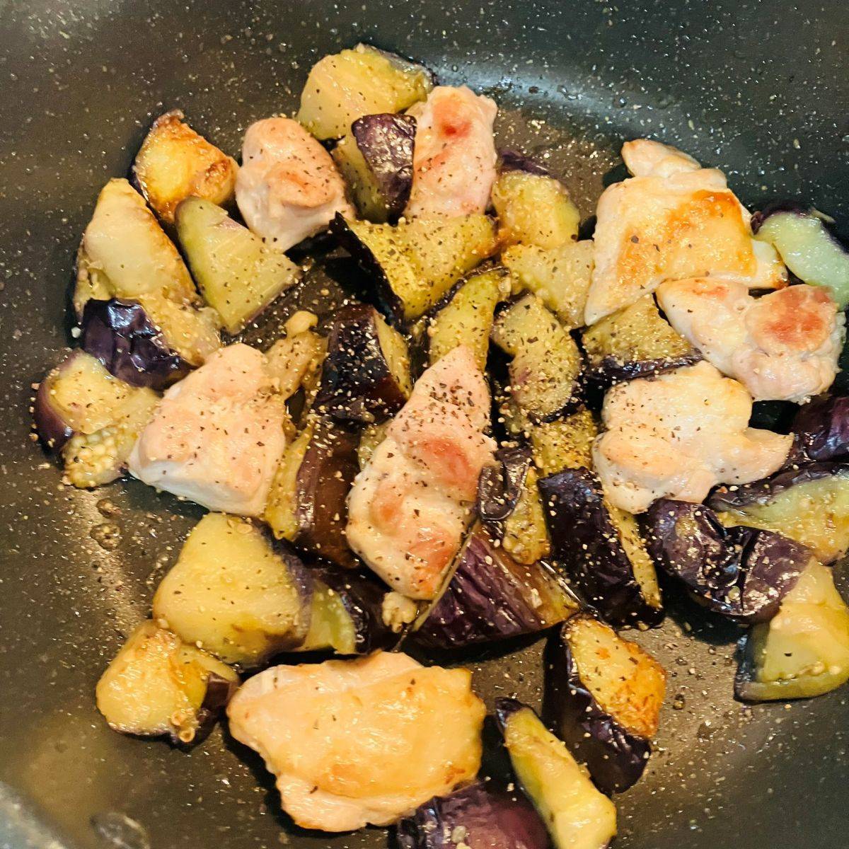 鶏肉は火が通りにくいので、ナスと別々に炒めることにしました。