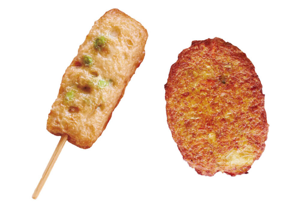 食感が楽しい手作りさつま串 枝豆(150円)と食べ応え抜群の番屋揚げ(350円)。
