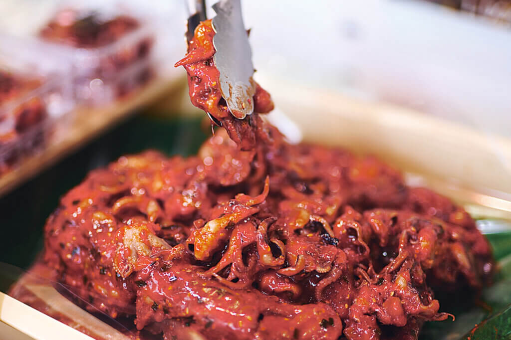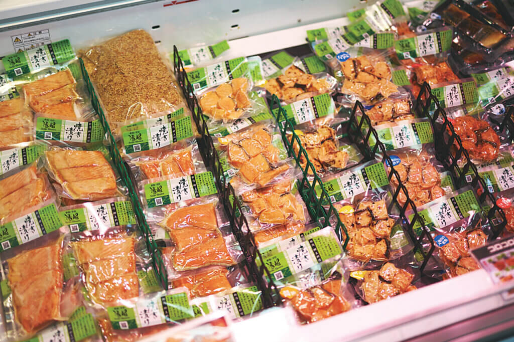 冷蔵ケースにはたこキムチや甘えび明太など種類豊富な珍味が並び、ご飯のおともに限らずお酒との相性も抜群。お土産用にももちろん、思わず自宅用にもたくさん購入したくなること間違いなし。