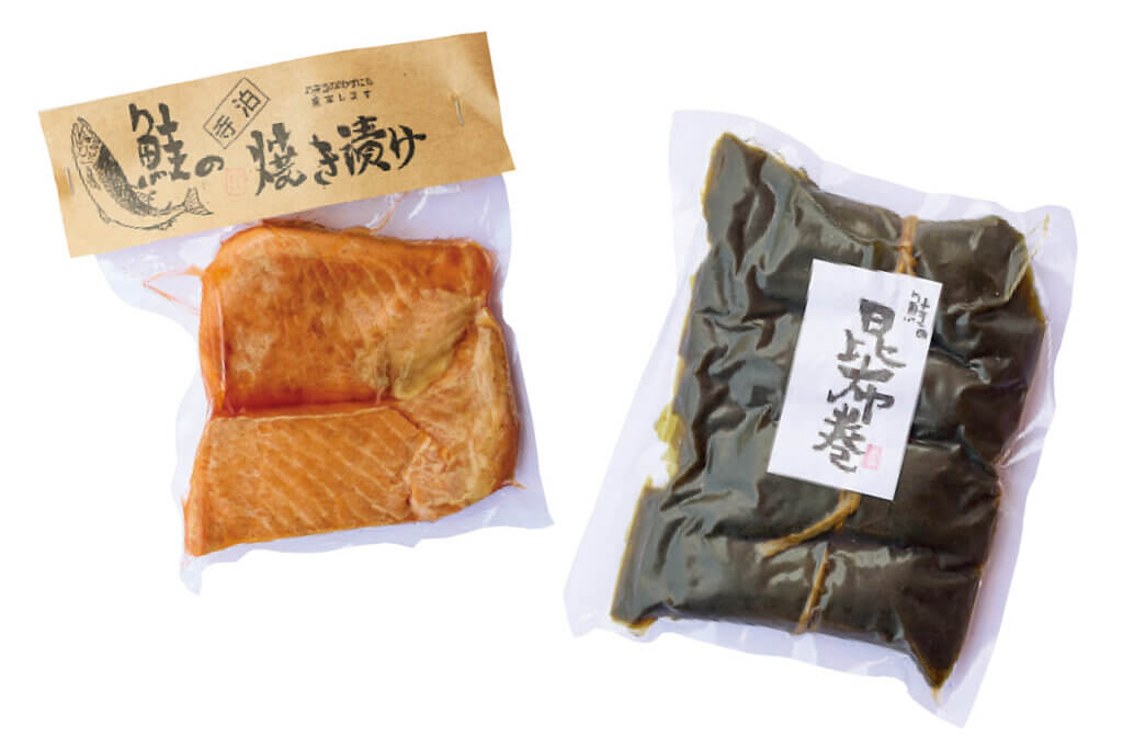 自家製の焼き漬け(600円)や昆布巻き(700円)も人気。