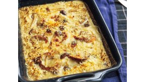 牛乳に片栗粉でとろみをつければ、ホワイトソースいらずの手軽なグラタン風に。和風の味つけで、ご飯にもよく合います。