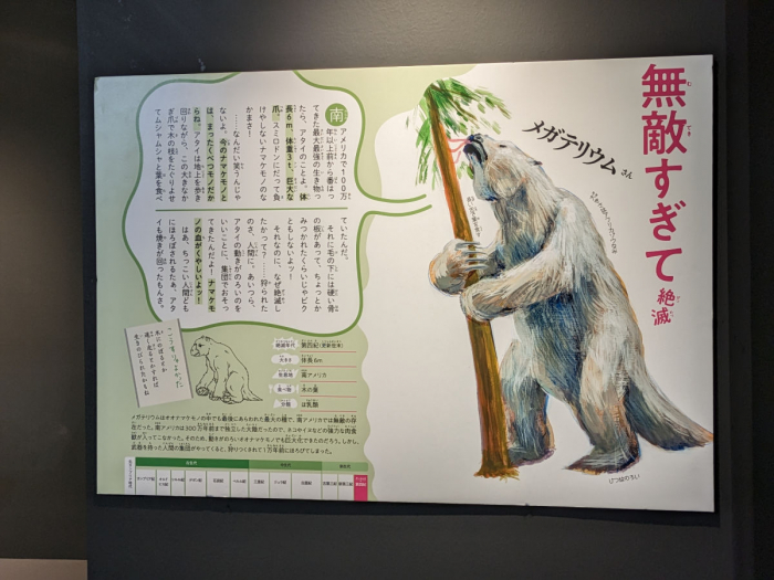 展示場内にはあまたの生物たちの絶滅理由が所狭しと展示されていますが、中には「おしっこのしすぎで絶滅」という「え、そんなものまで!?」という理由のものも。