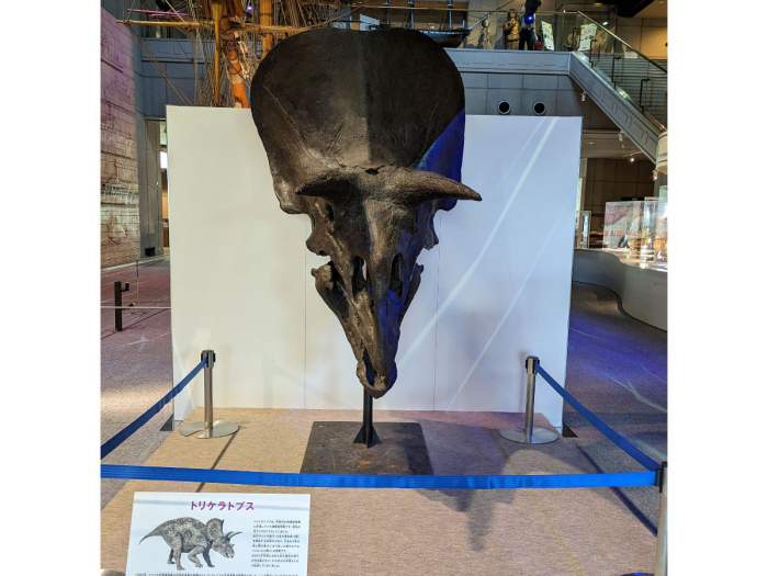 館内に入ると、巨大なトリケラトプスの頭骨がお出迎え。あまりの大きさに思わず「デカッ!」と声が出てしまいました。